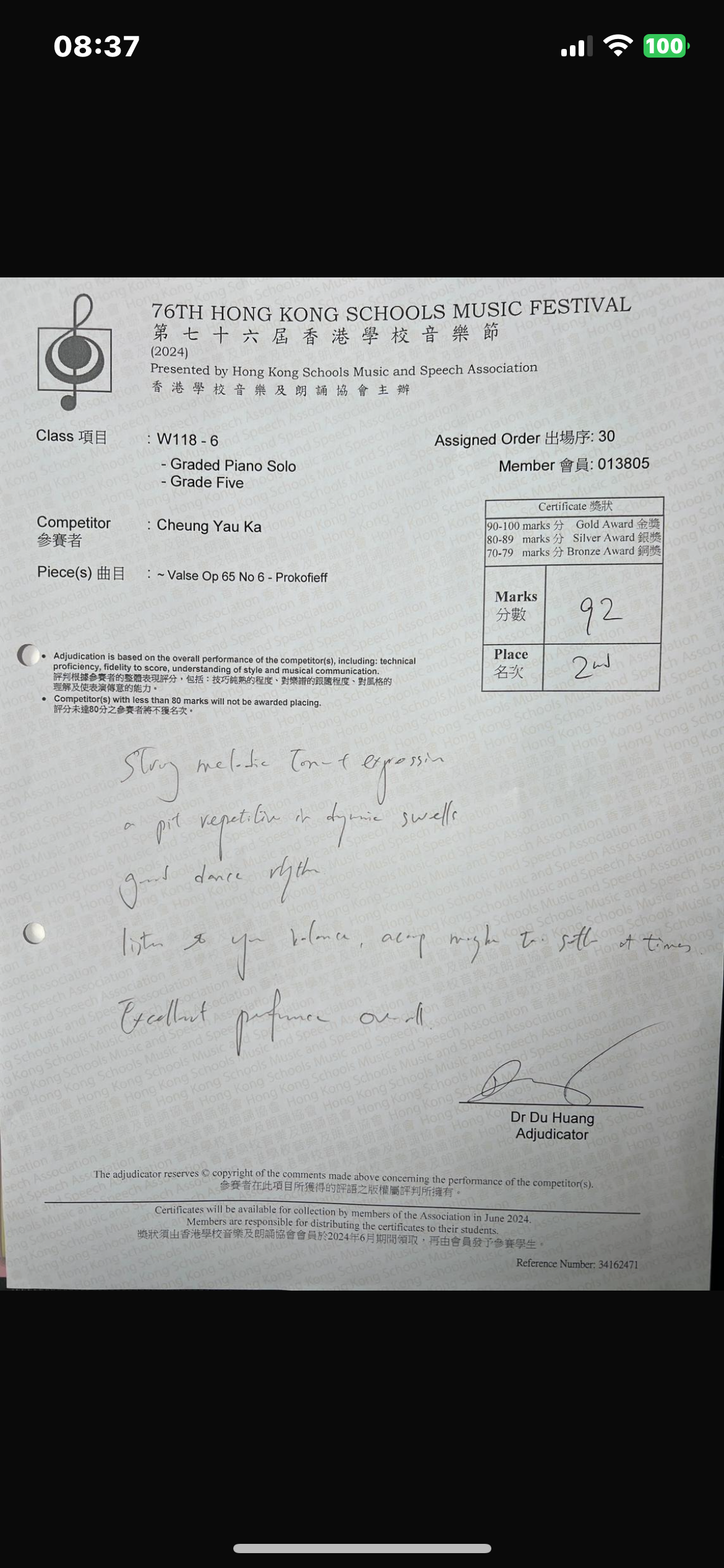 Students LTCL Diploma winner of 2024